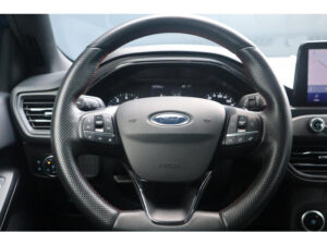 Neem plaats in de cockpit, start de motor en voel het vermogen. Met deze sportieve Ford Focus hebt u altijd de controle. De aandrijving van deze Ford wordt verzorgd door een driecilinder motor en een automatische transmissie. Rijden met pit? Geen punt! De sportstoelen geven steun en stevigheid! De uitmonstering van deze auto wordt gecompleteerd door onder meer 17 inch lichtmetalen velgen, LED koplampen, sportonderstel, dakspoiler, elektrisch inklapbare buitenspiegels en in delen neerklapbare achterbank.