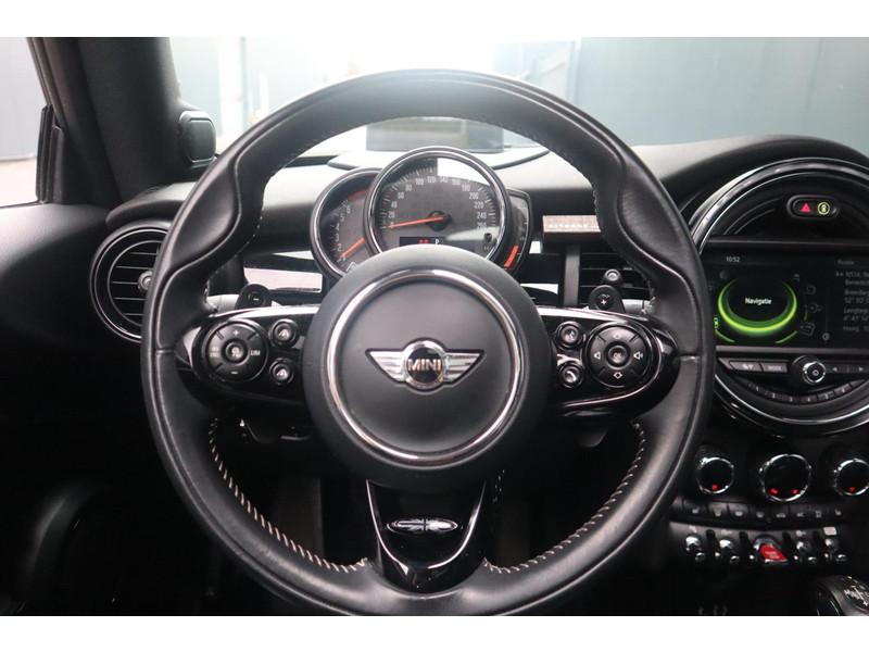 Met de achteruitrijcamera ziet u wat er achter de auto gebeurt. Zo rijdt u moeiteloos achteruit. Onderweg kunt u veilig genieten van het audio-installatiesysteem met DAB-radio en het navigatiesysteem met harde schijf. Want in deze Mini bedient u ze vanaf het stuurwiel. Met de automatische airconditioning selecteert u de gewenste temperatuur. Het systeem doet de rest. Het hoort bij een intelligente auto als deze dat hij zelf in staat is om zijn omgeving in de gaten te houden. Dat doet deze Mini met een automatisch inschakelbare verlichting en een regensensor. Met de cruise control komt u bijna nog fitter aan dan u vertrekt. Met sportstuur met schakelpaddels, keyless entry en boordcomputer is deze Mini helemaal compleet.