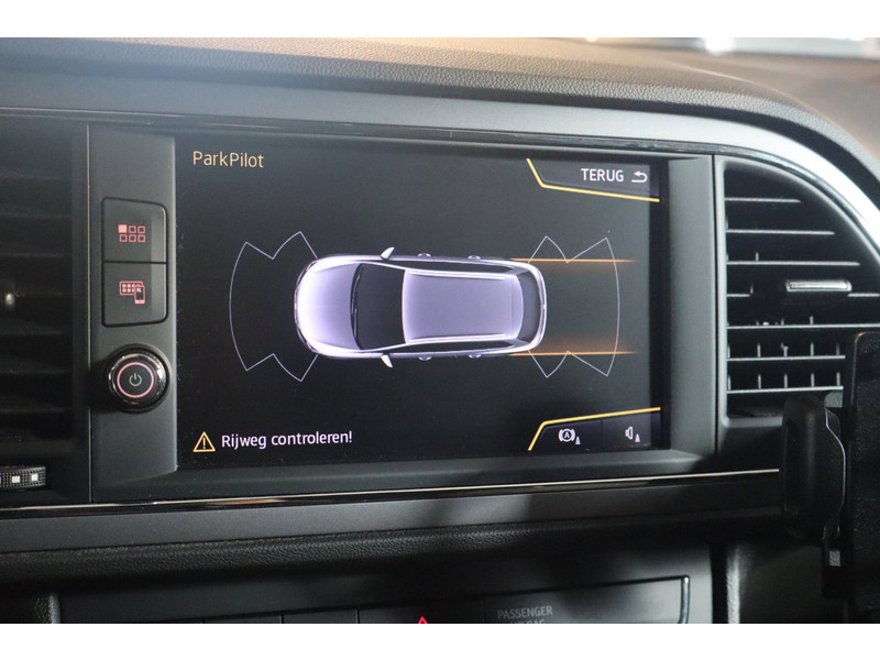 Zoals u mag verwachten van deze Seat Leon ST is hij uitgerust met een reeks aan actieve veiligheidssystemen. In het instrumentarium laat de verkeersborddetectie de actuele verkeersborden zien. Het Lane-keeping systeem let constant op en waarschuwt of corrigeert als u onoplettend over de lijnen van de rijstrook gaat. In deze Seat vinden we verder een hill hold functie en bandenspanningcontrolesysteem.